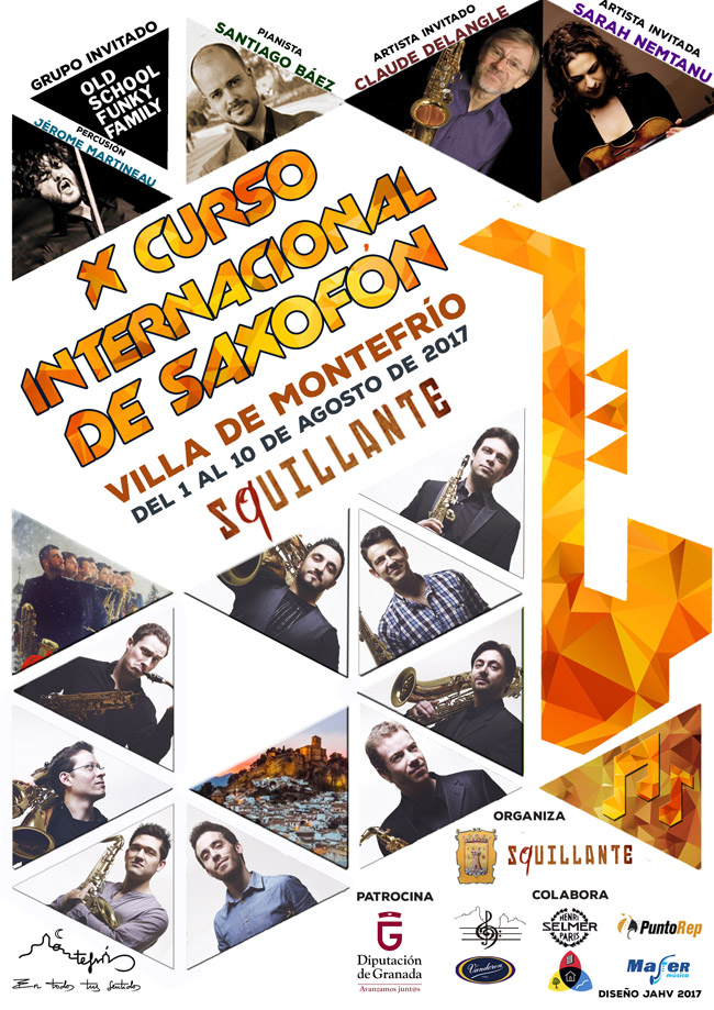La Ensemble Squillante, que culmina en esta edición la apuesta de continuidad, está formada por nueve saxofonistas titulados en el Conservatorio Superior de Música y Danza de París, son profesores en diferentes conservatorios europeos y miembros de  orquestas, como la Orquesta de Paris, la Orquesta Nacional de Francia, la Orquesta Sinfónica de Madrid o la Orquesta de RTVE , y ha incorporado al pianista Santiago Báez y al percusionista Jérôme Martineau-Ricotti al núcleo del profesorado habitual, formado habitualmente por la propia Ensemble Squillante.  Para esta décima edición han invitado a músicos de lujo, como Claude Delangle (Catedrático de saxofón del Conservatorio Superior de Música y Danza de Paris, concertista internacional y una referencia del saxofón), Sarah Nemtanu (violín concertino de la Orquesta Nacional de Francia y violinista de la película “El Concierto”, está considerada como una de las mejores violinistas del momento) y la Old School Funky Family (una joven agrupación francesa de funk), quienes, además, impartirán masterclases. Diez días de música a raudales, del 1 al 10 de agosto,  en los que Montefrío  se vuelca por completo.